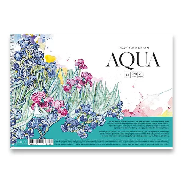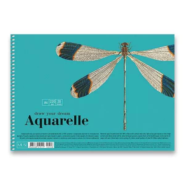 Skicák řady Aquarelle ve velikosti A4 (209,5 x 295 mm) má desky z tvrdého kartonu a krémový papír o gramáži 220 g/m2, 20 listů. Díky boční spirále lze jednoduše otáčet listy až do 360º. Formát: A4, 20 listů, mix 3 motivů