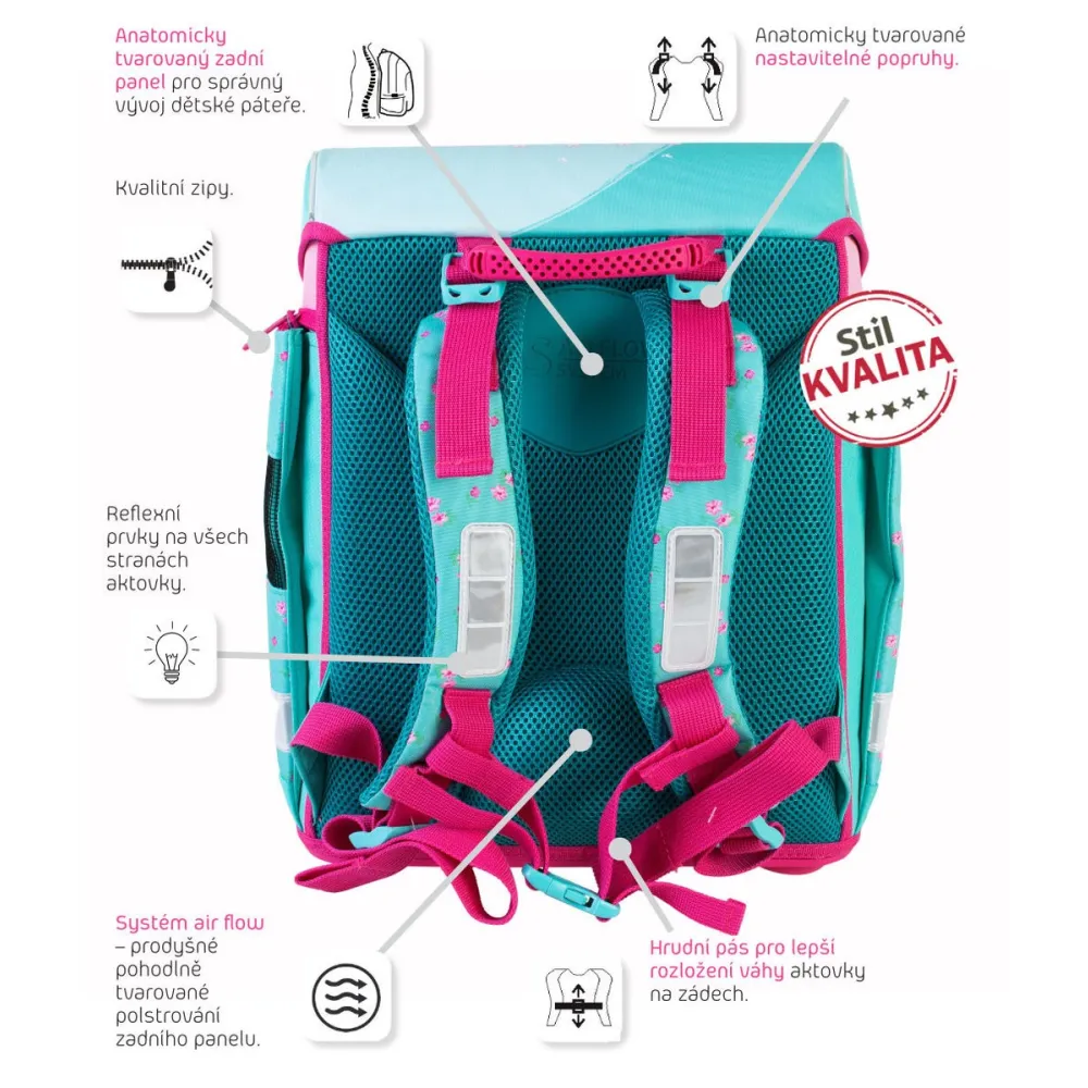 Kvalitní, ergonomická a velmi odolná školní aktovka je vybavena reflexními prvky