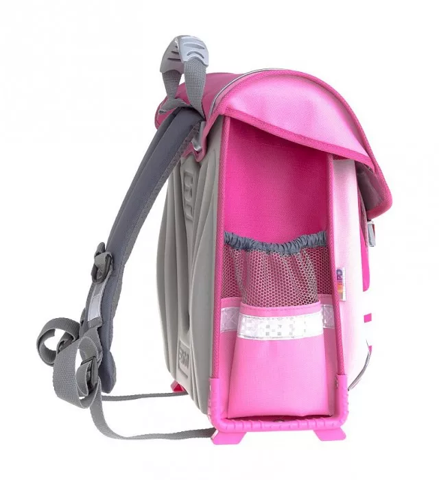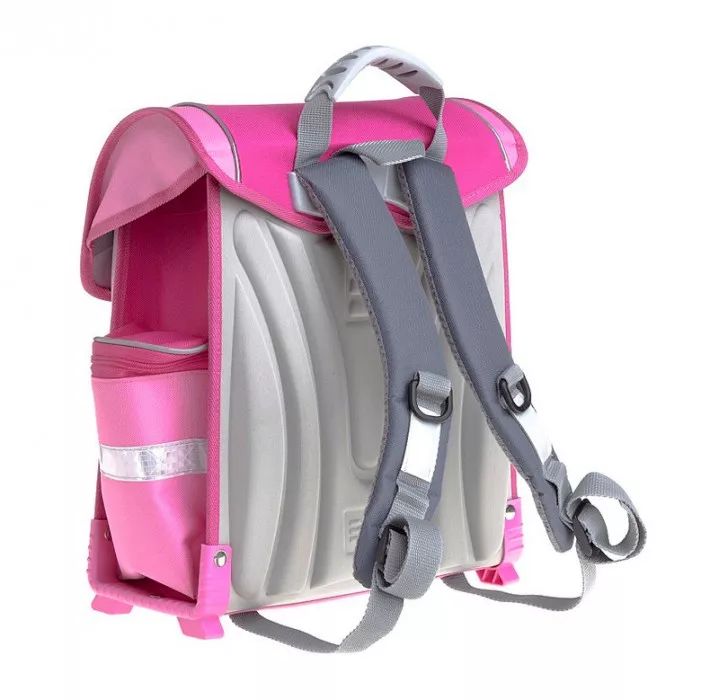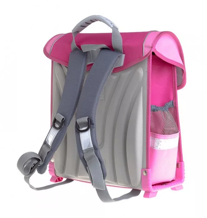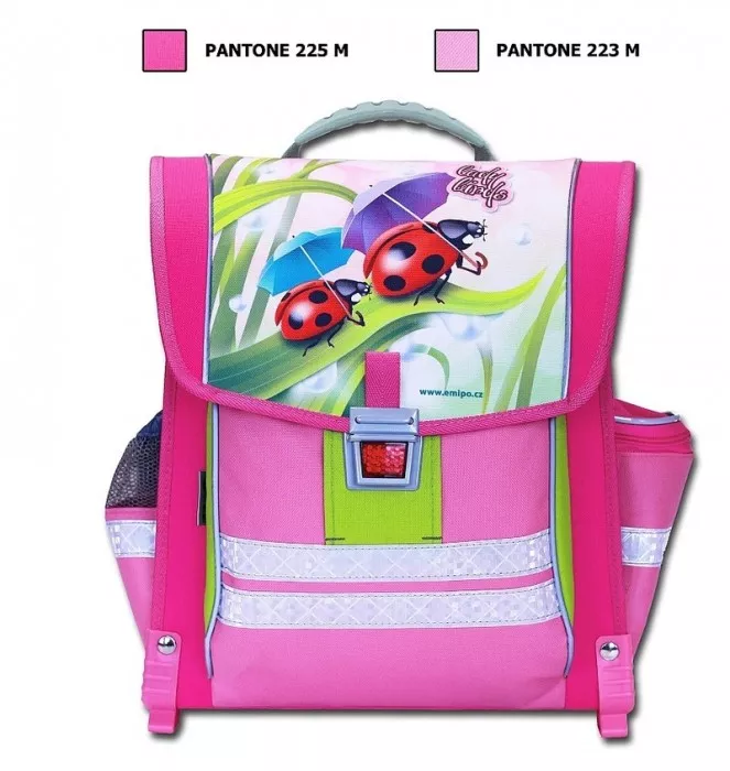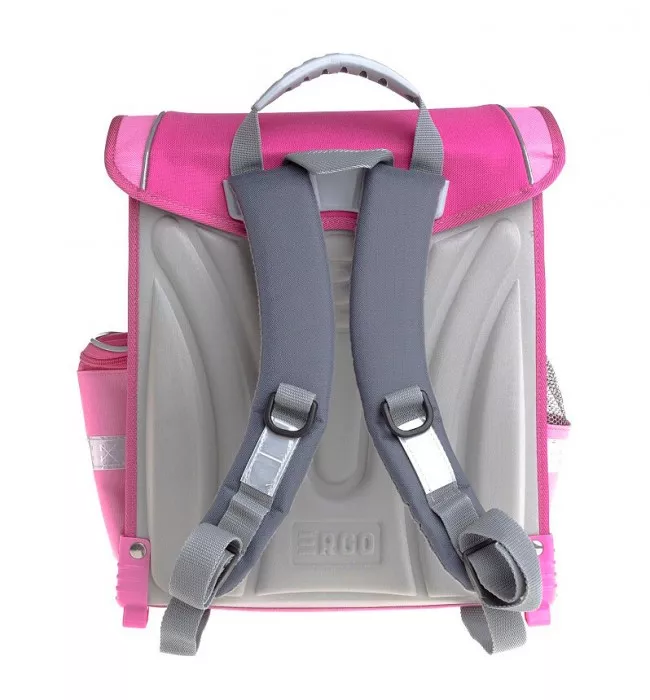 - Zadní část je opatřena nově vyvinutými anatomicky tvarovanými zády ERGO vyrobenými z gumové pěny na povrchu potažené bavlněnou textilií. Jejich tuhost je nastavena tak, aby se jednak neprotláčel obsah do zad školáka a také aby tzv. seděla na zádech a držela správnou polohu páteře.