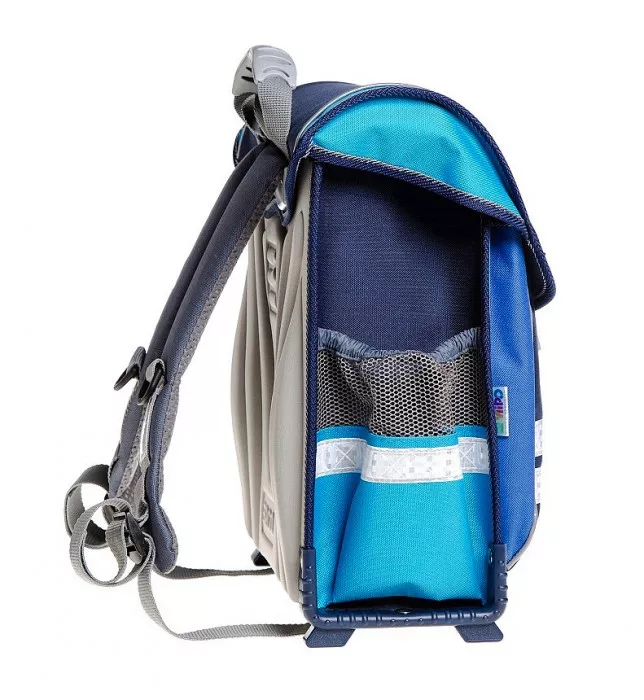 - Školní aktovka je uzavřena prostorově tvarovanou klopnou přes celý svůj obvod, včetně přední kapsy. Tím je chráněn obsah aktovky před znehodnocením při deštivém počasí. Klopna je zajištěna proti otevření kovovým zámečkem s reflexní odrazkou.