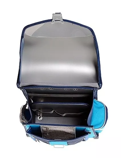- Vnitřní část školní aktovky je členěna pohyblivou přepážkou na dvě části. Její plynule měnitelnou polohu umožňuje šlová pruženka. Tím je zajištěna větší variabilita pro vnitřní uspořádání jednotlivých školních pomůcek (sešitů, knih apod.)