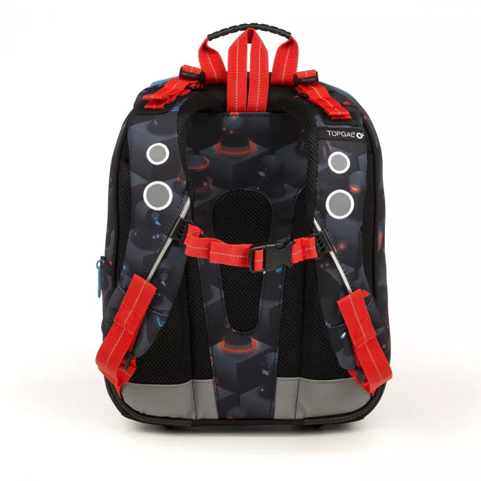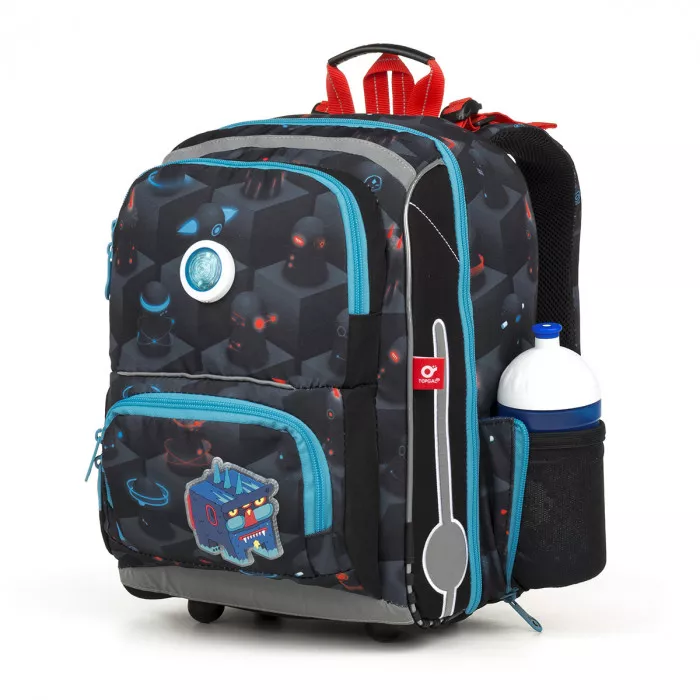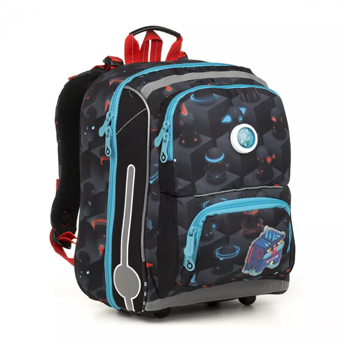 Školní aktovka Topgal BEBE 18046 B. Jednokomorová chlapecká školní aktovka s příšerkami a blikačkou! pro ty nejdrobnější nejmenší školáky v 1. a 2. třídě blikačka na přední části batohu stabilní základna – aktovka díky ní nepadá nastavitelné popruhy s hrudním páskem pevný tvarovaný systém zad s ...