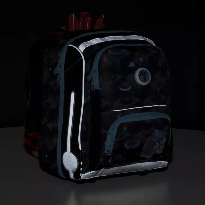Jednokomorová chlapecká školní aktovka s příšerkami a blikačkou! pro ty nejdrobnější nejmenší školáky v 1. a 2. třídě blikačka na přední části batohu stabilní základna – aktovka díky ní nepadá nastavitelné popruhy s hrudním páskem pevný tvarovaný systém zad s hliníkovým rámem Pevná a stabilní jednokomorová aktovka je určena hlavně pro nejmenší a nejdrobnější kluky s výškou do 120 cm, kteří se chystají do 1. nebo 2. třídy ZŠ. Aktovka je menší než ostatní batohy z naší nabídky. Na výšku má pouze 37 cm a díky utahovatelným popruhům a hrudní přezce bude sedět na zádech i opravdu drobného chlapce. I přes menší rozměry se do ní určitě vejdou desky A4 (doporučujeme je dávat co nejblíže k zádům dítěte).Jedna hlavní komora aktovky dítěti usnadní organizaci a rozdělení pomůcek uvnitř aktovky. Vnitřní prostor je členěný nepropustnými přepážkami na tři části. Uvnitř hlavní komory najdete i organizér třeba na čipové karty, tužky a malou kapsu na zip. Kapsu na lahev najdete na boční straně aktovky.Na přední kapse aktovky jsou dvě praktické menší kapsy na zip. Na horní kapse je připevněna blikačka, která svítí, nebo bliká, a dítě je díky ní dobře vidět i při špatné viditelnosti. V horní kapsičce je pak praktická jmenovka a do kapsy se vejde klidně i penál PENN 18046 nebo krabička na svačinku.Spodní kapsička je menší, pojme potřebné drobnosti, jako jsou klíče nebo kapesníčky, a navíc je v ní ještě jedna menší kapsa se zipem.Ramenní popruhy jsou polstrované a ergonomicky tvarované. Stejně tak je tvarované i vyztužení zad s lehkým vyjímatelným hliníkovým rámem. Samozřejmostí je dostatek reflexních prvků na všech stranách aktovky i na popruzích. Stejný střih aktovky vyhrál v loňském roce test MF DNES! Tak hurá do školy! Další vychytávky: ucho s plastovou rukojetí pro přenášení aktovky v ruce poutko k zavěšení batůžku na háček u lavice aktovka nepromokne – látka je opatřena zátěrem proti dešti odolné dno batohu z pevného materiálu TOPDURA plastové nožky proti převržení batoh byl testovaný v ITC Zlín, kde prošel na jedničku Náš tip: Rodiče, víme, že nechcete zatěžovat své děti nošením batohu, tak to často „vezmete za ně“. Nenoste ale batoh jen na jednom rameni – raději přenášejte batoh v ruce za poutko, které je k tomu určené. Na jednom rameni se veškerá tíha obsahu batohu přesune na jednu stranu a trpí tím horní šev ramenního popruhu. Případná reklamace by nemusela být uznána.
