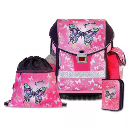 Školní aktovkový set EMIPO ERGO ONE, motiv Butterfly 3-dílný.