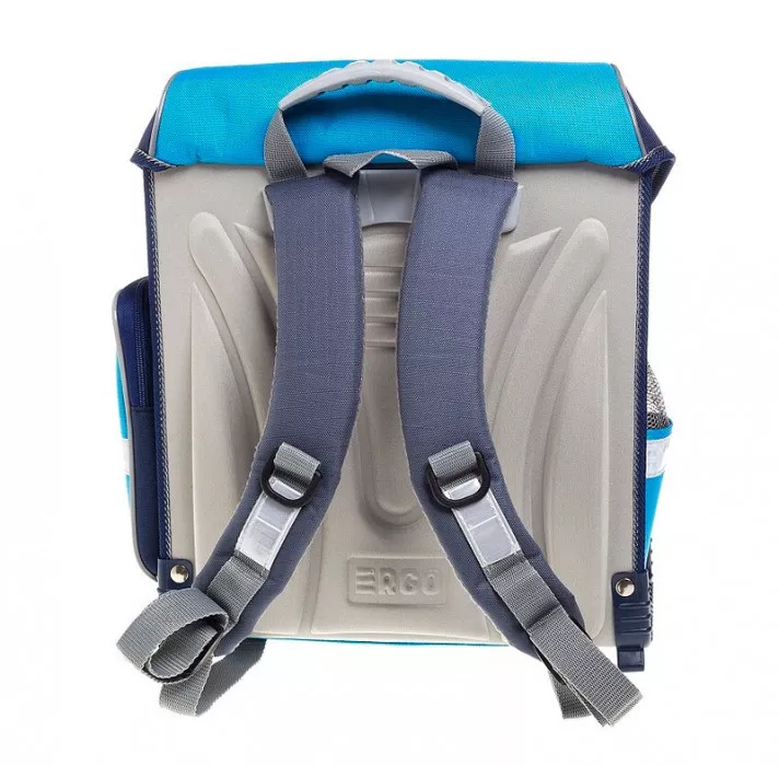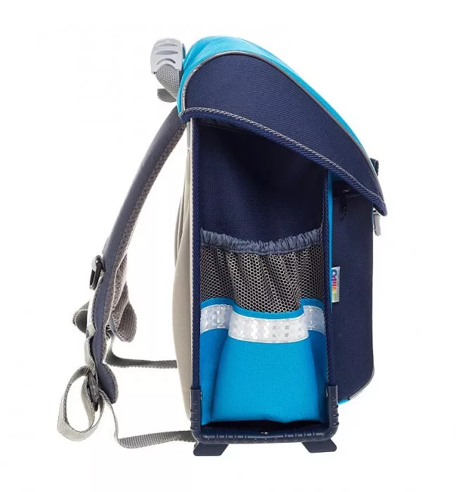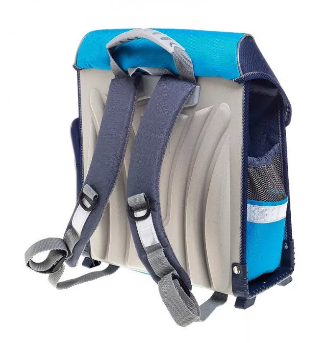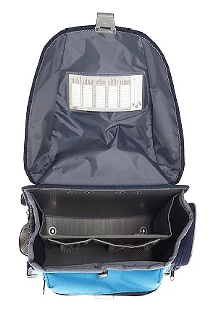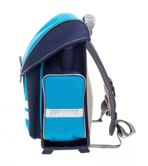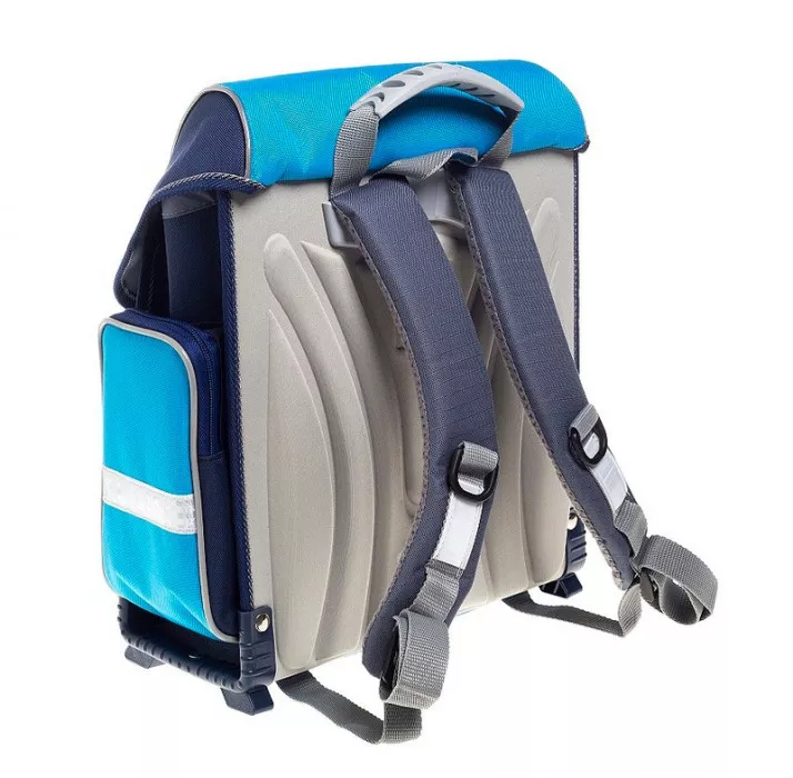 Vnitřní část školního batohu je členěna pohyblivou přepážkou na dvě části. Její plynule měnitelná poloha umožňuje větší variabilitu vnitřního uspořádání a tím i uložení jednotlivých pomůcek (sešitů, knih apod.) podle individuální potřeby žáka. Na této přepážce je našita členěná kapsa ze síťoviny pro uložení např. sešitů formátu A5, žákovské knížky, mobilu, hygienických kapesníčků apod. Dále je tam našito poutko s plastovým oválkem pro zavěšení svazku klíčů. Horní obvod této vnitřní části je opatřen stahovací šňůrkou s brzdičkou. Toto řešení umožňuje měnit velikost celkového objemu vnitřní části školního batohu, podle vkládaného množství učebních pomůcek. Na předním dílu je našita velká kapsa rozměru š.250 x h.50 x v.230mm. V horní části je uzavíratelná na zip. Ve střední části je umístěn kovový zámeček. Přes celou šířku přední kapsy a přes obě boční kapsy je našit bezpečnostní reflexní pásek. Školní batoh je uzavírám prostorově tvarovanou klopnou přes celý svůj obvod, včetně přední kapsy. Tím je chráněn obsah před znehodnocením při deštivém počasí. Na vnitřní části klopny je našita plastová kapsička s týdenním rozvrhem hodin a jmenovkou. Zadní část batohu je opatřena anatomicky tvarovanými zády vyrobenými z gumové pěny na povrchu potažené bavlněnou textilií. Jejich tuhost je nastavena tak, aby se jednak neprotláčel obsah batohu do zad školáka a také aby tzv. seděla na zádech a držela správnou polohu páteře. Dolní část batohu je opatřena ochrannými plastovými rohy, které mimo jiného, umožňují dlouhodobé stání aktovky na mokré podložce, aniž by hrozilo znehodnocení jejího obsahu. Při celkových rozměrech š.310 x h.190 x v.370mm váží batoh pouhých 0,98kg! Tímto Vám nabízíme extra lehký školní batoh s pevnou konstrukcí a užitnými vlastnostmi školní aktovky, tříletou zárukou a doživotně bezplatným servisem !