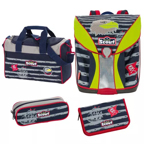 Vysoce kvalitní školní set německé značky Scout s úžasným chlapeckým motivem nesmí chybět žádnému školákovi. Tato báječná sada obsahuje nejbezpečnější školní batoh Nano, penál s prvotřídní náplní tužek a pastelek značky Staedtler, sportovní tašku a peněženku na mince. Všechny produkty jsou se stejným lákavým motivem. Značka Scout zaručuje nejvyšší kvalitu, což dokazuje poskytnutím 3-leté záruční lhůty na materiálové a výrobní vady! Dokonale bezpečný školní batoh úzkého tvaru je opatřen pevným rámem pro stabilní strukturu. Použité jsou pouze prvotřídní nepromokavé materiály zajišťující stálost barev. Pro optimální využití dostupného prostoru je batoh opatřen unikátním výškově nastavitelným zámkem. Disponuje hlavní velkou komorou oddělenou dvěma přepážkami, kapsou na svačinu a bočními kapsami. Dno je z pevného materiálu a umístěné 1cm nad zemí! Záda batohu jsou ergonomicky tvarovaná a ramenní popruhy ve tvaru S jsou v ideální šíři a výškově nastavitelné. Batoh je speciálně vyvinut s důrazem na bezpečnost dětí.