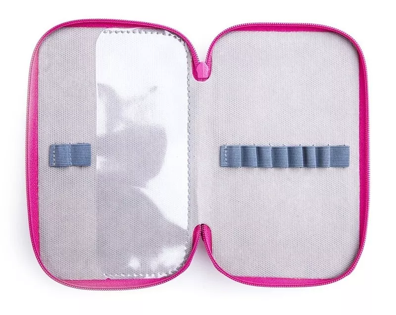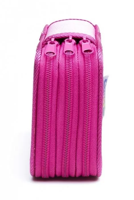 Školní třípatrový penál je určen pro žáky 1.stupně ZŠ. Každé jednotlivé patro se uzavírá na samostatný zip. **Na přední části je glitrový tisk !** Má celkem 30 pružných gumových poutek pro uložení psacích potřeb. Jedno patro je opatřeno uzavíratelnou kapsičkou na suchý zip, ve třetím je průhledná přihrádky pro týdenní rozvrh se jmenovkou. Pouzdro má rozměr š.190 x v.55 x h.120mm. Prázdné váží 0,19kg