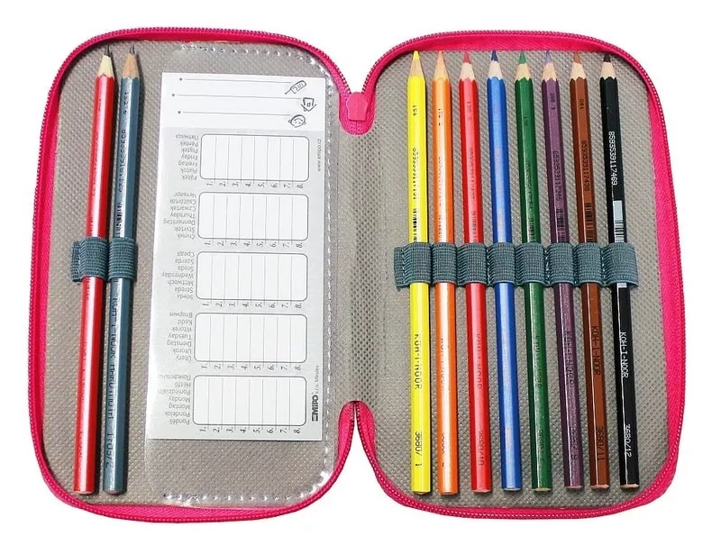 (plněné 0,38kg). Můžete si vybrat mezi penálem neplněným nebo plněným psacími potřebami. Psací potřeby jsou od renomovaných značek Koh-i-noor, Centropen, Concord. Plněný školní třípatrový penál obsahuje: