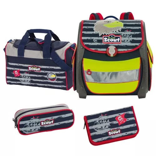 Školní set Scout 4-dílný, s motivem krále moří, obsahuje nejbezpečnější školní aktovku Buddy, perfektní sportovní tašku do ruky či přes rameno, penál s prvotřídní náplní tužek a pastelek značky Staedtler a peněženku na mince.