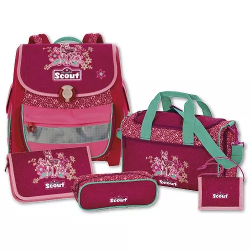 Školní set Scout, Buddy, 5-dílný, srneček. Školní set Scout 5-dílný, s motivem srnečka, obsahuje nejbezpečnější školní aktovku Buddy, penál s prvotřídní náplní tužek a pastelek značky Staedtler, penál bez náplně, peněženku s poutkem a perfektní sportovní tašku do ruky či přes rameno.