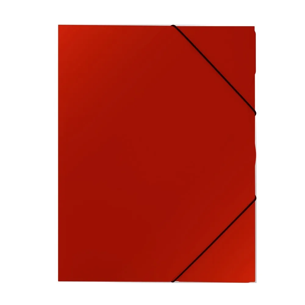 Desky se třemi chlopněmi. Uzavírání pomocí gumičky. Materiál polypropylen, síla 350 mic. Roztažitelný hřbet až 3,0 cm. Kapacita 250 listů. Pro formát A4. Barvy s vysokým leskem