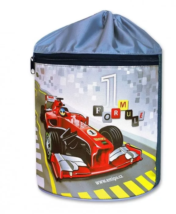 Sportovní pytel EMIPO Formule racing. Velký školní sáček na cvičky ve tvaru sportovního pytle je válcovitého tvaru. Je vhodný pro žáky 1.stupně ZŠ, sáček se dá nosit i jako batoh na zádech nebo přes rameno.
