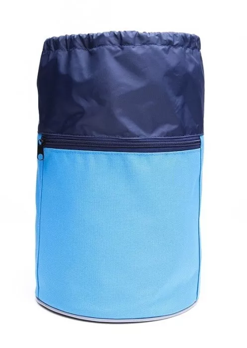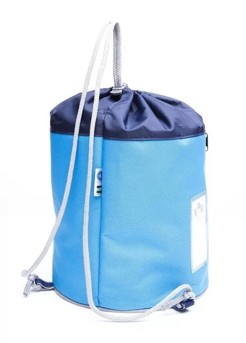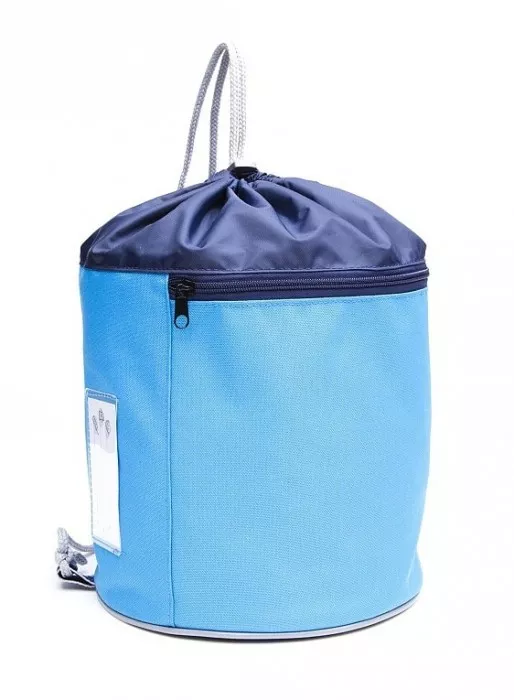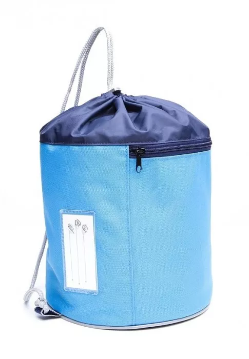 Velký školní sáček na cvičky ve tvaru sportovního pytle je válcovitého tvaru. Průměr dna měří 230mm, výška pytle je 340mm. Na přední části je našita kapsa na zip. Kapsa má velikost š.260 x v.210mm. Na kapse je barevný celoplošný obrázek. V horní části okraje sáčku je navlečena šňůrka jejíž konce jsou zašity v dolní části okraje sáčku. Při stažení horní části se šňůky na bocích uvolní natolik, že vytvoří"řemeny" a sáček se dá nosit jako batoh na zádech nebo přes rameno. Váží cca 0,105kg. Sáček je vhodný pro žáky 1.stupně ZŠ.