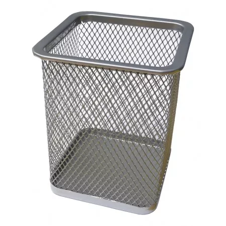 Stojánek drátěný na tužky hranatý Europen stříbrný. Rozměry stojánku 9,1 x 9,1 x 9,5 cm.