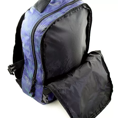 Nepromokavý a vysoce odolný studentský batoh v atraktivním designu je speciálně navržen k přenášení notebooků či tabletů a jejich příslušenství. Batoh je vyroben z měkkého materiálu a disponuje dvěma komorami. Hlavní prostorná komora oddělena polstrovanou přepážkou na suchý zip. Na přední straně kapsička opatřená zipy po obou stranách umožňující snadný přístup k uloženým věcem. Záda batohu anatomicky tvarované a vzdušné. Polstrované a funkčně tvarované ramenní popruhy jsou délkově nastavitelné a prodyšné. Boční strany batohu disponují plastovou přezkou pro zafixování batohu. V horní části velké měkké poutko na zavěšení či krátkodobé přenášení.