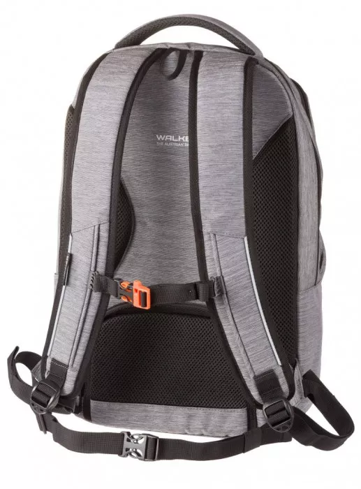 Studentský batoh Walker COLLEGE Stone. Moderní studentský batoh Walker COLLEGE je dvoukomorový batoh s přední kapsou uzavíranou na zip. Uvnitř této kapsy je další kapsa se zipem přes celou její šířku. Na ní je našitý organizér, který tvoří dvě otevřené kapsičky mezi nimiž jsou poutka na psací potřeby. Velká zadní komora je členěna polstrovanou kapsou na notebook velikosti 15" na níž je našitá otevřená kapsa na tablet. Na protější straně je v horní části malá kasička a USB kabel, který vyúsťuje v USB port. V horní části zadního dílu je pevné madlo. Druhá komora je jednoduchá s otevřenou kapsou přese celou šířku batohu. Obě komory se uzavírají zipem. Obvod přední kapsy a část nosných řemenů jsou lemovány reflexní paspulí. Zádová část má tvarované polstrování pro pohodlné nošení. Dolní bederní operka je řešena jako skrytá kapsa na zip s RFID (radiofrekvenční) ochranou. Úplně dole se nachází nastavitelný bederní pásek pro lepší stabilitu batohu na zádech studenta. Na batohu nechybí ani poutko na zavěšení a na obou stranách najdeme boční rozšířítelné kapsy. Zvláštnost: Pokud je kapsa batohu opatřena RFID ochranou, tak je zpravidla lemována speciálními ochrannými RFID vlákny, které dokáží zablokovat příchozí bezdrátové komunikace a zamezí tak nežádoucímu čtení choulostivých dat z Vašich kreditních, bankovních a jiných karet.