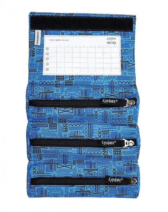 Studentský penál Explore ROLL Soccer. Rolovací studentský třísegmentový penál s transparentní slídou na rozvrh hodin. Zapínání studentského penálu je na suchý zip. Jednotlivé segmenty se uzavírají zdrhovadlem. Konstrukčně je penál chráněn průmyslovým vzorem a nenajdete ho jinde než pod značkou EXPLORE.