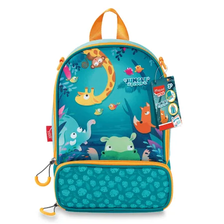 Obědový batůžek z kolekce Miniz v designu Jungle Fever s velkou hlavní komorou a malou izolovanou kapsou, která pomáhá udržet potraviny čerstvé a chladné. Objem 7,1 l. Vhodné pro děti od 3 let.