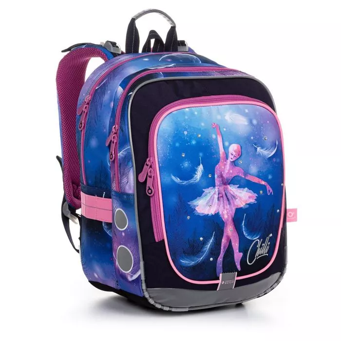 Lehoučký batoh se světelným vláknem jsme ozdobili třpytkami a potiskem s peříčky pro vaše malé baletky. Batoh ENDY je ideální do prvních školních let. Konstrukce batohu je díky pevným lisovaným zádům velmi lehká, proto jej můžeme doporučit i pro drobné slečny pod 120 cm. Objemem ale určitě vydrží nejméně od první do třetí třídy ZŠ.