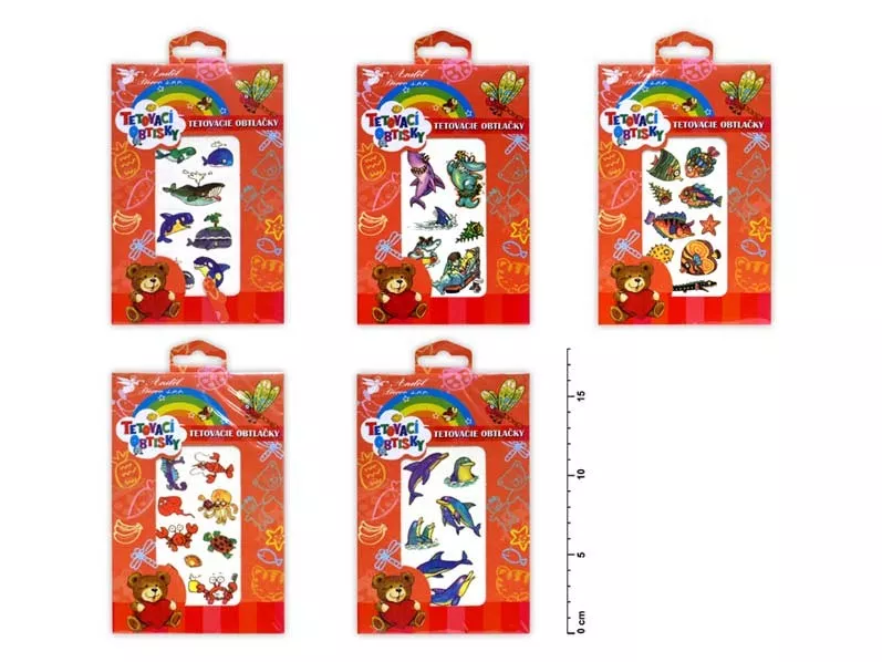 Tetovací obtisky ANDĚL 1196 barevné ryby 16,5x10,5cm. Dětské barevné tetování ryby (různé, dle skladových zásob), tyto nálepky jsou zdravotně nezávadné. Tetování lze odstranit pomocí dětského olejíčku, nebo běžným mytím.