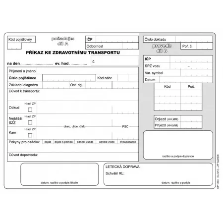 Produkt: Tiskopis OPTYS, 1203 Příkaz ke zdravotnímu transportu A5, číslovaný, samopropisovací, 2x25 listů je zařazen v těchto kategoriích