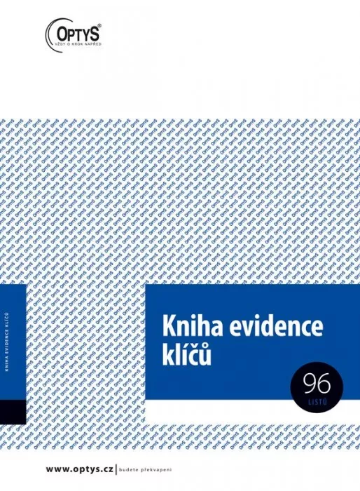 Tiskopis OPTYS 1243, Kniha evidence klíčů A4, 96 listů. Nepropisující tiskopis, blok 96 listů, formát A4 na výšku, modrofialová obálka.