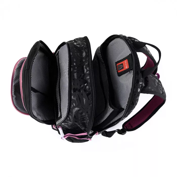 Topgal Studentský batoh RUBI 21027 G. Dívčí a dámský batoh nejen do školy ale i pro volný čas. Dvoukomorová sportovně elegantní novinka mezi našimi batohy v černorůžovém provedení. Sportovní ale zároveň elegantní design, pevný zádový systém s polstrováním a hliníkovou výztuhou.