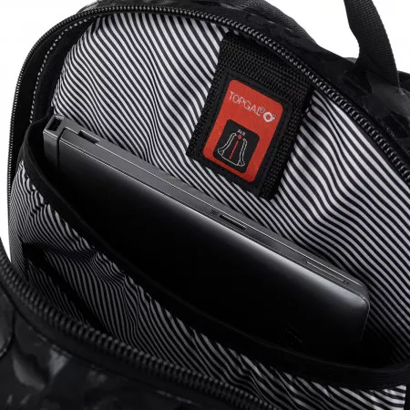 Topgal Studentský batoh RUBI 21027 G. Dívčí a dámský batoh nejen do školy ale i pro volný čas. Dvoukomorová sportovně elegantní novinka mezi našimi batohy v černorůžovém provedení. Sportovní ale zároveň elegantní design, pevný zádový systém s polstrováním a hliníkovou výztuhou. Zadní komora je větší, najdete v ní polstrovanou kapsu na notebook a menší polstrovanou kapsičku na drobnosti. Přední úzká komora má uvnitř malou síťovou kapsu na zip a karabinu na klíče, která je našitá na dlouhé pružence. Batoh disponuje pevným zádovým systémem s polstrováním a hliníkovou výztuhou. Po obou bocích batohu jsou síťové kapsy na zip. Jedna je opatřena i kompresním popruhem, díky kterému do kapsy umístíte pohodlně i lahev o objemu 1,5 l. Dno je vyrobeno z pevného materiálu Topdura který nepropustí vodu. U tohoto batohu jsou samozřejmostí reflexní prvky, které jsou umístěny na čele, bocích a rameních popruzích. K batohu můžete dokoupit pouzdro etue 21027 ve stejném designu. Rozměry: v x š x h ( 44 x 30 x 22 cm ). Objem 27 litrů.