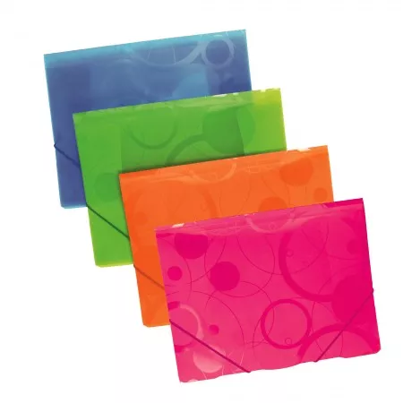 Tříklopá složka A4 s gumou polypropylen NEO COLORI.  Složka má uvnitř tři klopy a zvenku gumičku proti nechtěnému otevření složky. Rozměr složky je 349 x 320 x 5 mm.