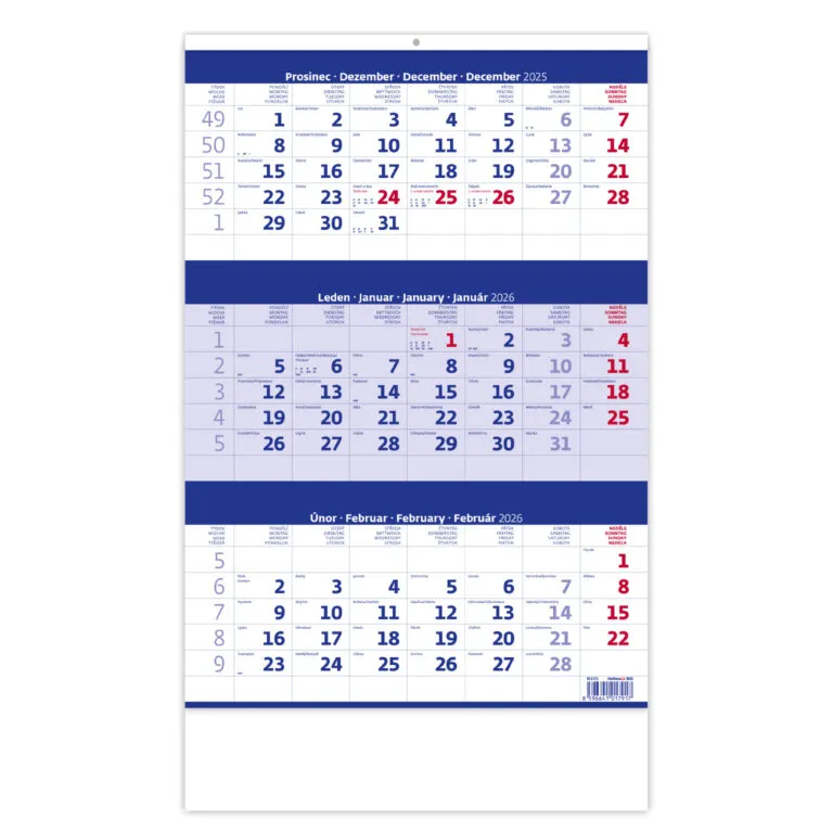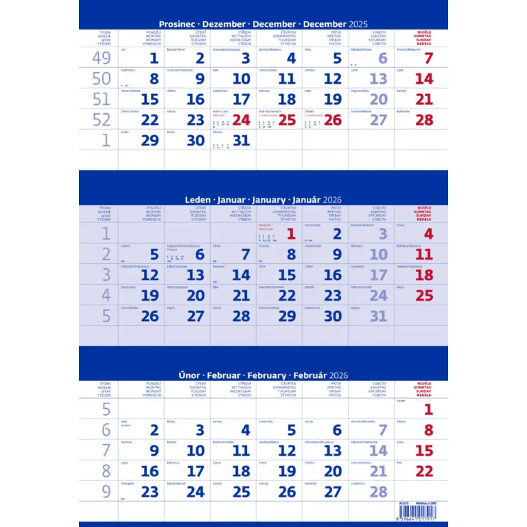 Kalendárium: české tříměsíční s poznámkami, jmény a se svátky vybraných evropských států (CZ / SK / A / B / D / F / H / CH / I / PL / RUS / UKR)
