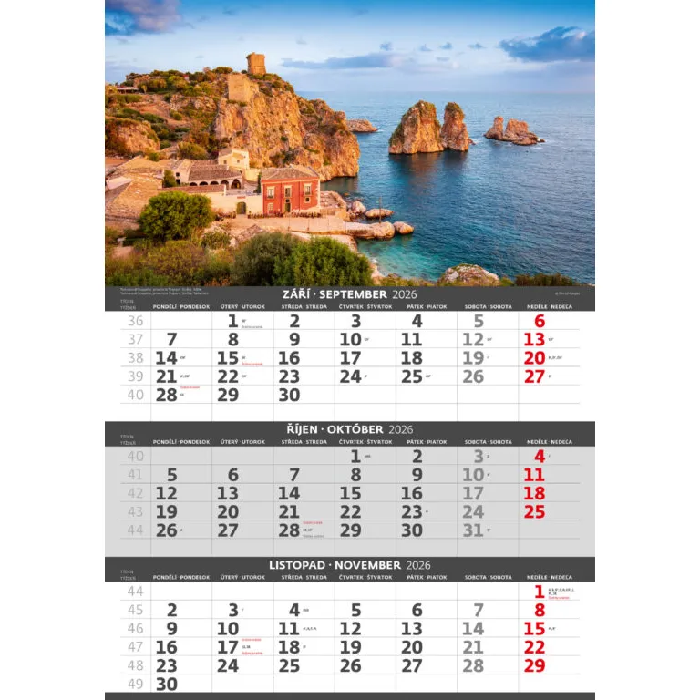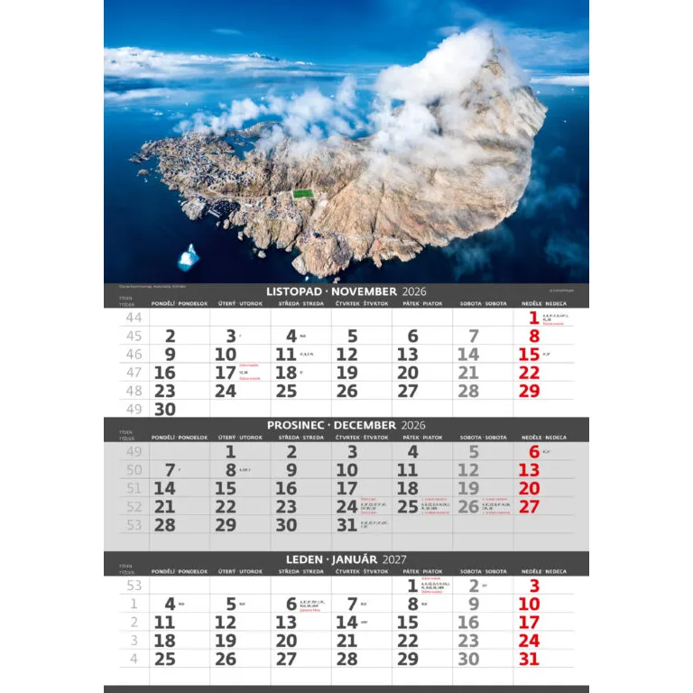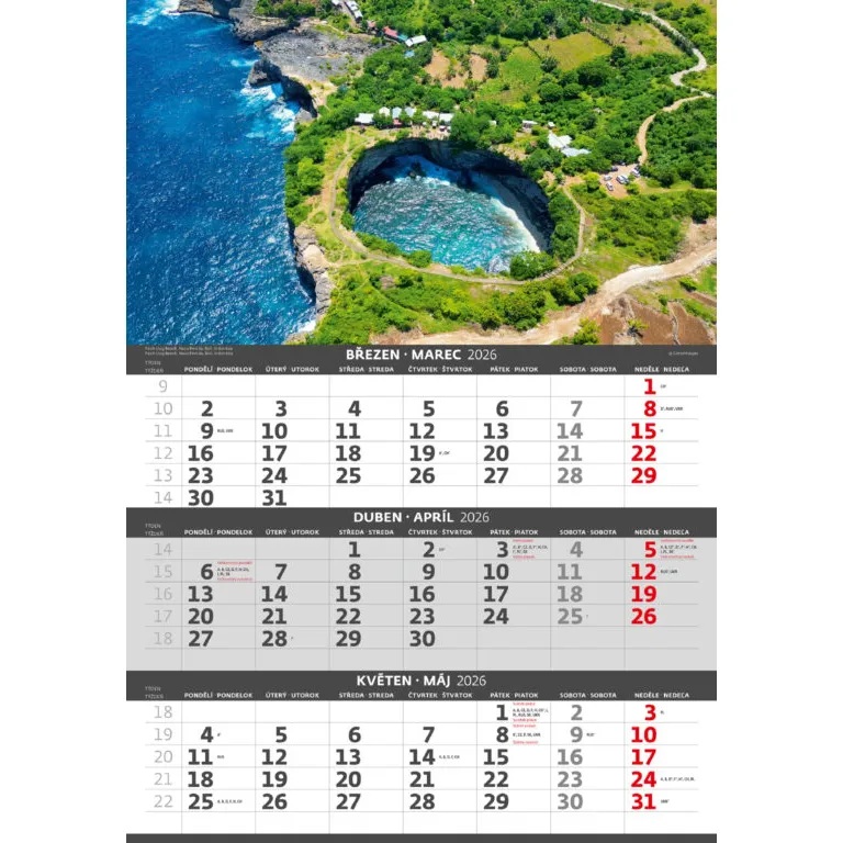 Prostor pro přítisk: 31,5 x 7 cmFormát kalendáře: 31,5 x 45 cm