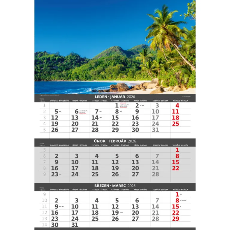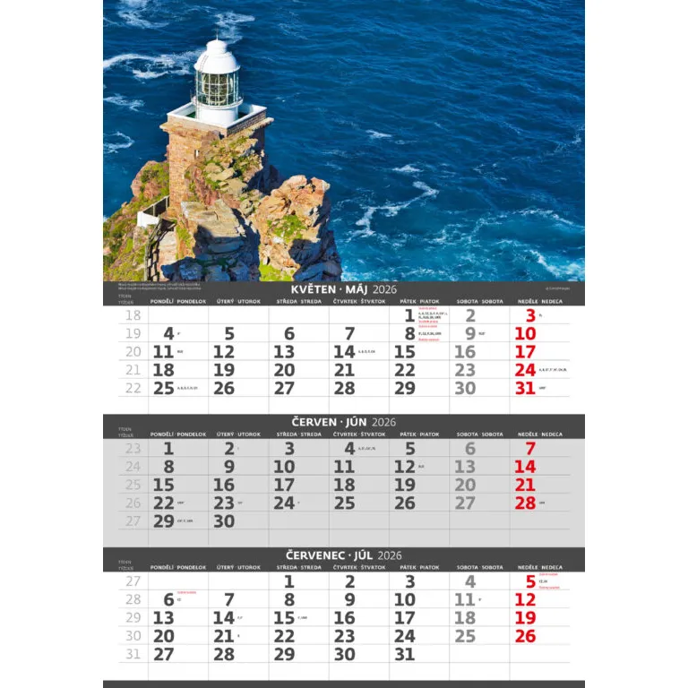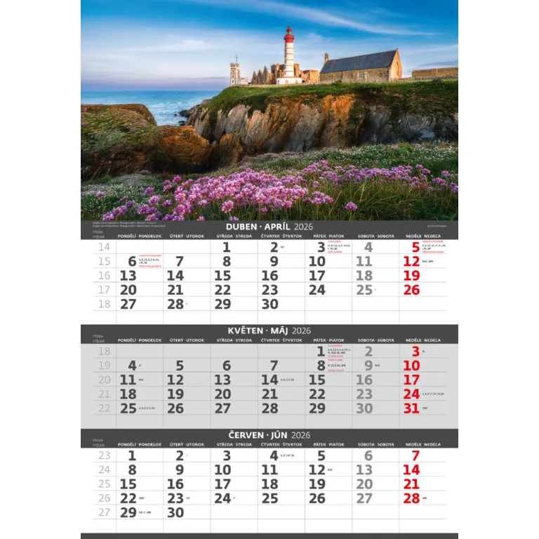 Kalendárium: české a slovenské tříměsíční + svátky vybraných evropských států (CZ / SK / A / B / D / F / H / CH / I / PL / RUS / UKR)