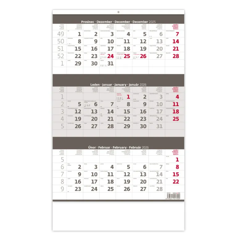Kalendárium: české tříměsíční s poznámkami, jmény a se svátky vybraných evropských států (CZ / SK / A / B / D / F / H / CH / I / PL / RUS / UKR)