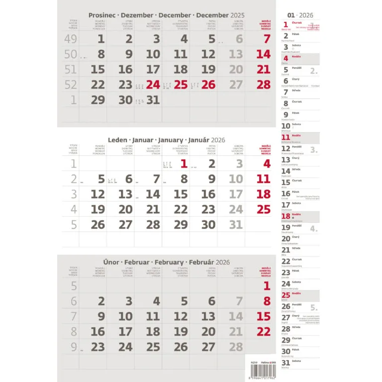 Kalendárium: české tříměsíční s poznámkami, jmény a se svátky vybraných evropských států (CZ / SK / A / B / D / F / H / CH / I / PL / RUS / UKR)
