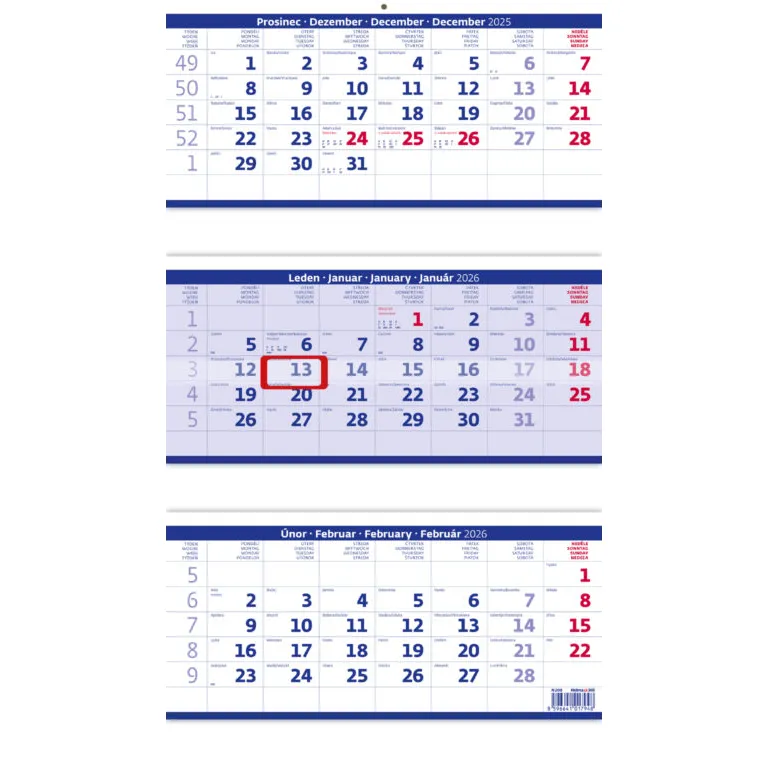 Kalendárium: české tříměsíční jmenné + svátky vybraných evropských států (CZ / SK / A / B / D / F / H / CH / I / PL / RUS / UKR)