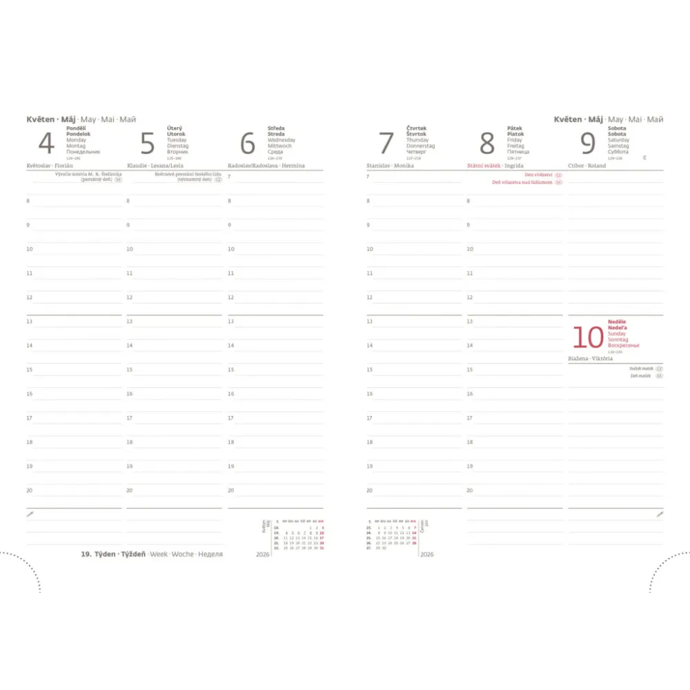 Kalendárium: týdenníFormát diáře: 145 x 205 mm