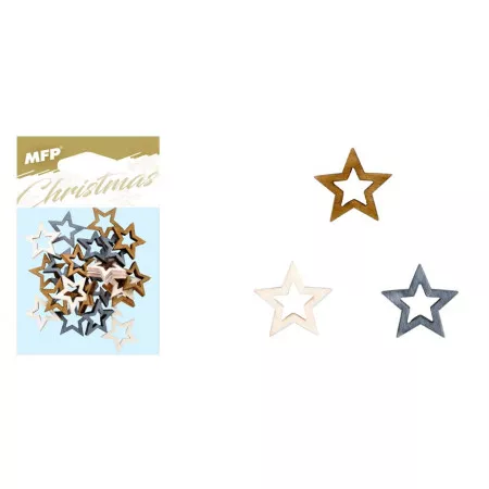Vánoční dekorace hvězda MFP 24ks 2cm mix 8885683. Vánoční dekorace dřevěná hvězda v mixu 3 barev (šedá, bílá, hnědá). Plánujete si vyrobit vánoční přáníčko, adventní věnec nebo si jen udělat kreativní pohodové odpoledne před Vánoci a vyzdobit si byt? Určitě neváhejte koupit tyto krásné dřevěné ...