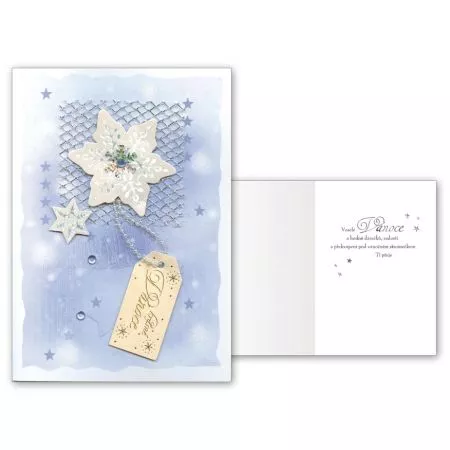 Vánoční přání malé. Vánoční přání je milý způsob, jak během svátků potěšit své blízké a přátele. Můžeme jím vyjádřit svou vděčnost, radost a přátelství, a to i na dálku, když se nemůžeme sejít osobně. Kromě přání krásných Vánoc bývá zvykem popřát i štěstí a úspěchy do nového roku. Je to tradiční gesto, kterým lidé šíří radost a pozitivní náladu. Text na přední straně: Bílé a kouzelné Vánoce Text uvnitř přání: Za oknem se vločky honí, zvonky v dálce tiše zvoní. Stromečky v celé zemi, sladce voní Vánocemi. Krásné vánoční svátky Papír: pohlednicový karton Přání je baleno v sáčku, součástí balení je i dopisní obálka. Uvedená cena je za 1 ks.