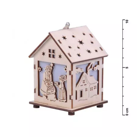 Vánoční svícen MFP domek dřevěný 8x7x9cm LMX-5397Y. Dřevěný vánoční svícen ve tvaru domečku. Plamínek je napájený knoflíkovou baterií, která je součástí balení. Ze spodní strany svícnu je spínač On/Off a víčko na výměnu baterie. Tuto vánoční lampičku můžete pověsit, nebo jen tak postavit na stůl.