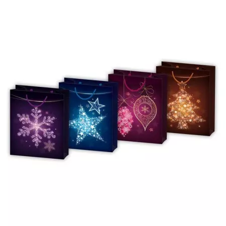 Vánoční taška MFP T 4 mix V21 190x250x90. Papírová vánoční taška s potiskem. Taška je opatřena pevným uchem pro snadné nošení a kartičkou kam můžete napsat jméno nebo krátké věnování. Uvedená cena je za 1kus (motiv dle skladových zásob).