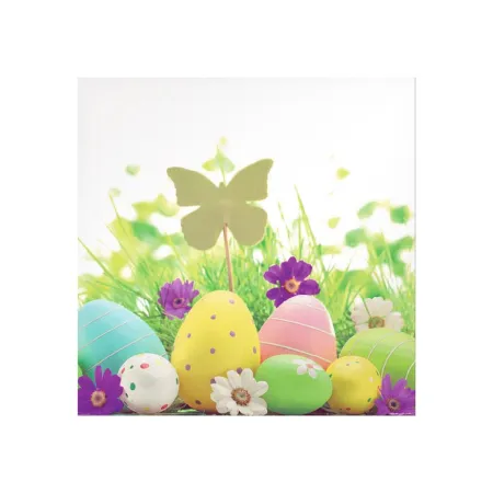 Papírový velikonoční ubrousek. Krásné velikonoční ubrousky s obrázky květin, kraslic a zajíců dodají prostřenému stolu nádech přicházejícího jara a vykouzlí příjemnou atmosféru u slavnostního oběda nebo večeře. Ubrousek je kvalitní z třívrstvého papíru. Vhodný i na ubrouskovou techniku a různé dekorace. MOTIV: květiny, kraslice, zajíci POČET UBROUSKŮ V BALENÍ: 20 ks Uvedená cena je za 1 balení po 20 ks.