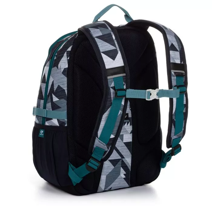 Volnočasový batoh Topgal TONY 20040 B vhodný pro studenty od druhého stupně ZŠ, SŠ, VŠ sportovně elegantní střih a originální design pevný zádový systém s polstrováním a hliníkovou výztuhou vhodný do školy i na sport Univerzální praktický batoh, který díky svému designu ocení, kromě žáků druhých stupňů, i starší školáci a studenti na středních a vysokých školách. Záda batohu jsou ergonomicky tvarovaná a polstrovaná tak, aby docházelo k správné cirkulaci vzduchu mezi batohem a zády. Díky pevné, lehké hliníkové výztuže bude tvar zad batohu vždy pevně anatomicky tvarovaný. Zadní komora je širší vejdou se do ní všechny potřebnosti, včetně vašeho notebooku (cca do velikosti 15,4"). Ten umístíte do polstrované kapsy v zadní komoře. Dobře se ale do ní vejdou i sešity a složky o rozměru A4. Na kapse na notebook je pak ještě jedna menší polstrovaná kapsa na tablet, mobil, nebo powerbanku. Uvnitř přední užší komory oceníte menší síťovou kapsu na zip, třeba na uložení peněženky nebo mobilu. Na čele batohu jsou dvě praktické menší kapsy na zip na drobnosti. Po obou stranách batohu najdete síťové kapsy, z nichž jedna je opatřena kompresním páskem. Díky němu nebude z kapsy vypadávat ani větší PET lahev.Další bonusy: polstrované regulovatelné ramenní popruhy s hrudním pásem poutko na přenášení batohu v ruce zátěr proti dešti - batoh nepromokne kvalitní zipy s kovovými taháčky decentní reflexní prvky na čele, bocích i ramenních popruzích batohu dno batohu je z pevného, odolného materiálu Topdura testovaného v ITC Zlín