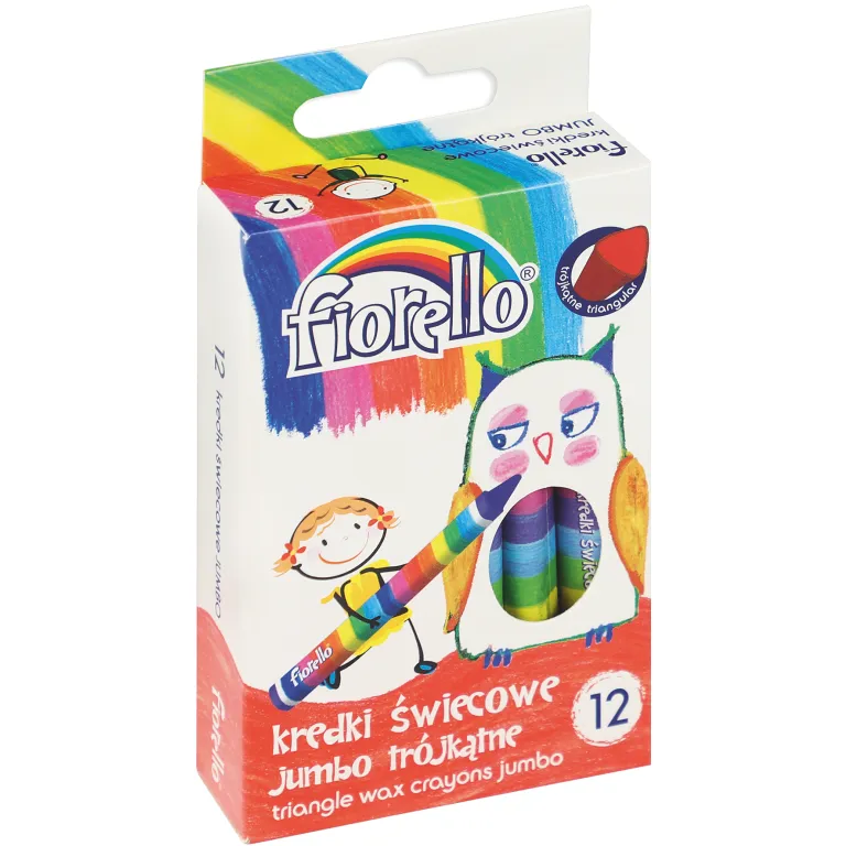 Objevte radost z kreslení s kvalitními voskovkami Fiorello JUMBO! Balení obsahuje 12 sytých, jasných barev, které snadno kloužou po papíře. Díky trojhrannému tvaru se pastelky pohodlně drží i v drobných dětských ručičkách, což podporuje správný úchop a rozvoj jemné motoriky. Jsou extra silné a odolné proti zlomení, ideální pro předškoláky i školáky. Voskovky jsou netoxické a bezpečné pro děti.