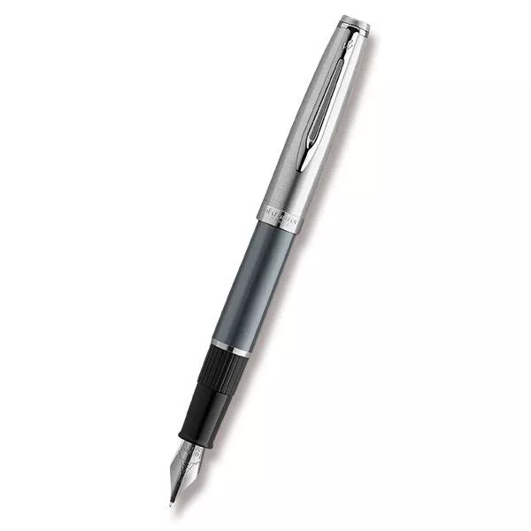 Waterman Emblème Deluxe Grey CT plnicí pero hrot F. Plnicí pero s nasazovacím víčkem a hrotem větší velikosti z ušlechtilé nerezové oceli. Možnost použití jak inkoustových bombiček, tak i plnění z lahvičkového inkoustu. Dodáváno s bombičkou v dárkové krabičce. Tělo z lakované pryskyřice šedé barvy a víčko z broušené nerezové oceli. V kombinaci s pochromovanými doplňky. Pařížské střechy byly a stále jsou inspirací francouzských luxusních módních značek. A stejně je tomu i u designu modelové řady Emblème, jejíž kovové víčko evokuje šedé zinkové, střechy haussmanských bytových domů z 19. století. Emblème je vysoce funkční a moderní psací nástroj, vhodný pro každodenní používání nebo jako reprezentativní dárek. TIP: K plnicímu peru byste mohli využít konvertor Waterman s lahvičkovým inkoustem nebo inkoustové bombičky.