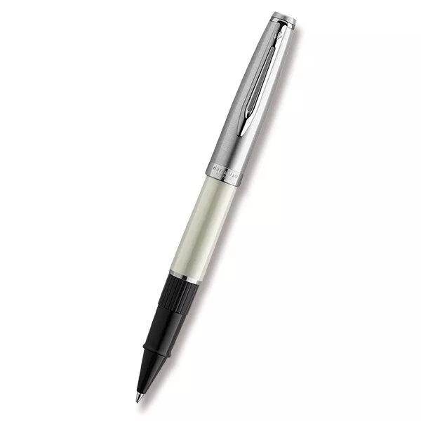 Waterman Emblème Ivory CT roller. Roller s nasazovacím víčkem se standardní náplňí do rollerů. Dodáváno s černou náplní. Lze používat náplně do rollerů i do kuličkových per. Dodáváno v dárkové krabičce. Tělo z pryskyřice v barvě slonové kosti doplněné broušenou nerezovou ocelí. V kombinaci s pochromovanými doplňky. Pařížské střechy byly a stále jsou inspirací francouzských luxusních módních značek. A stejně je tomu i u designu modelové řady Emblème, jejíž kovové víčko evokuje šedé zinkové, střechy haussmanských bytových domů z 19. století. Emblème je vysoce funkční a moderní psací nástroj, vhodný pro každodenní používání nebo jako reprezentativní dárek. TIP: K rolleru byste mohli potřebovat i náplně Waterman do rollerů.