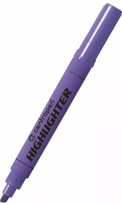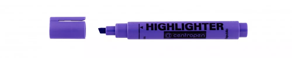 Zvýrazňovač Centropen 8552, FIALOVÝ.Celofluorescenční zvýrazňovač s reflexním pigmentovým inkoustem vhodným pro zvýrazňování textů na všech druzích papíru. Klínový hrot, šíře stopy 1–4,6 mm, 7 fluorescenčních barev inkoustů, ventilační chránítko.